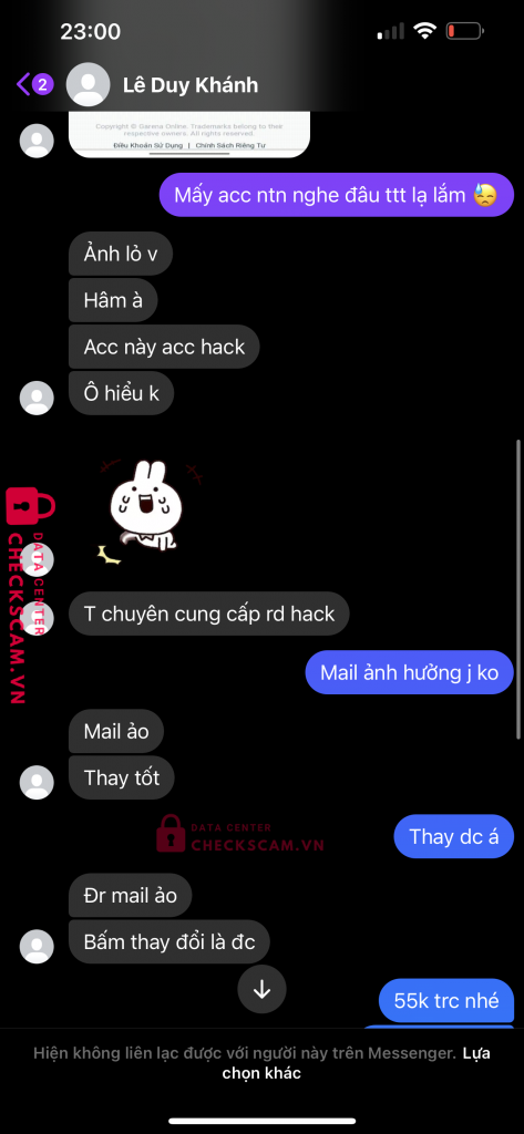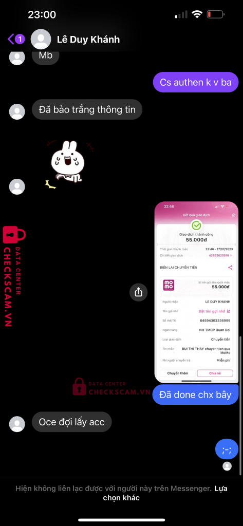 Scammer Alert: Le Duy Khanh Reported: November 16, 2024 Scammer Information Full Name: Le Duy Khanh Payment Gate: Mb bank Payment Account: 64594303336999 Category: Marketplace scams Source: Checkscam Evidence Files Report Description Scam qua hmu Comments Your comment Add Comment No comments yet. Be the first to share your experience with this scammer.