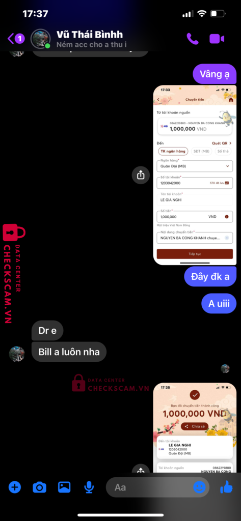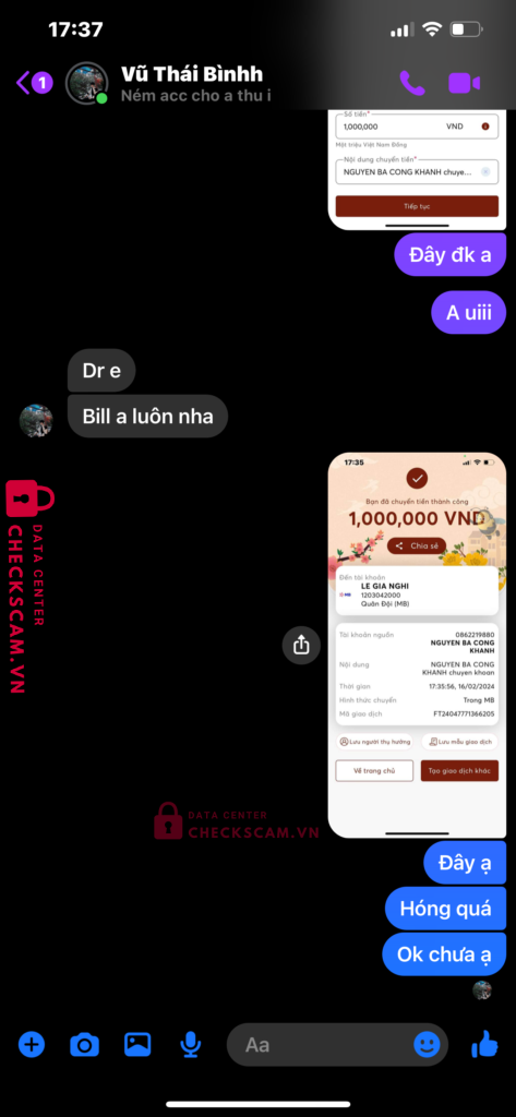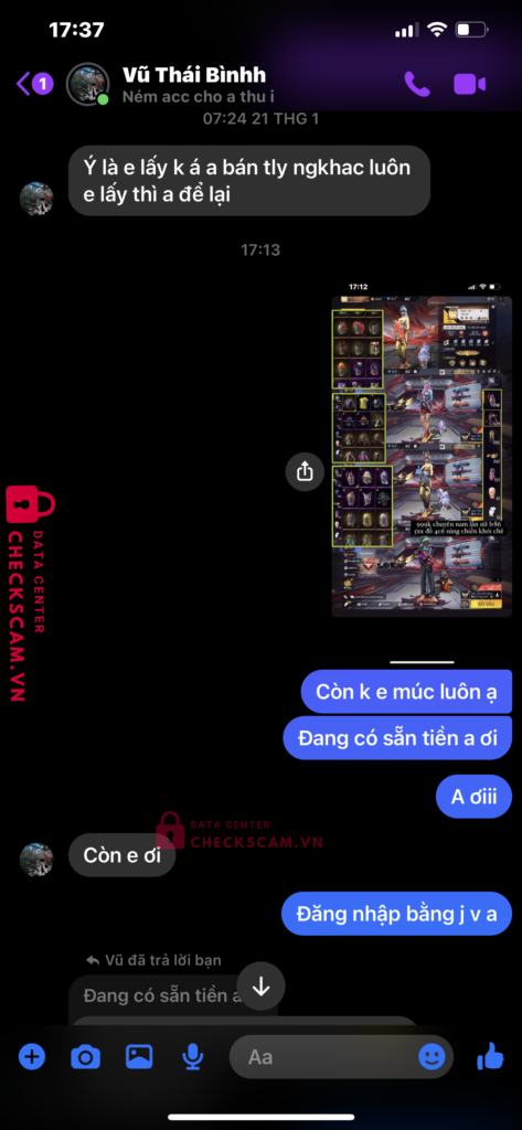 Mình muốn mua acc free fire của bạn này do mình thấy khá nhiều bill và là admin checkscam nhưng mình không chắc đó là web real hay fake ạ. Mình mua của bạn đó 1 acc 1 triệu. Lúc đầu thì sai mật khẩu acc đăng nhập nhưng sau đó bạn đó cũng hỗ trợ hết mình để đổi lại mật khẩu acc cho mình bằng cách gắn sđt mình vô . Nhưng sau khi gửi lại mật khẩu mới thì nó vẫn sai và bạn đó đã chặn mình và chiếm đoạt 1 triệu của mình