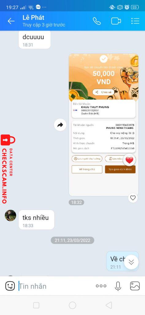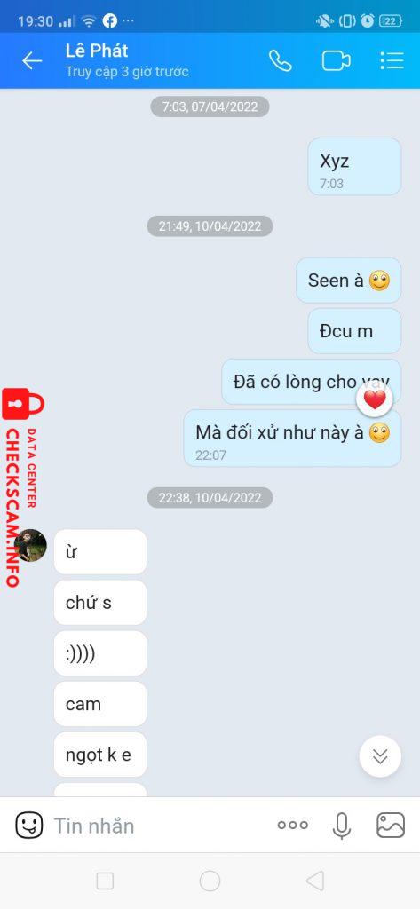 Scammer Alert: Lê Gia Phát Reported: November 16, 2024 Scammer Information Full Name: Lê Gia Phát Phone Number: 0586034762 Payment Gate: Mb Bank Payment Account: 888805102007 Category: Marketplace scams Source: Checkscam Evidence Files Report Description Vay 50k xong block Comments Your comment Add Comment No comments yet. Be the first to share your experience with this scammer.