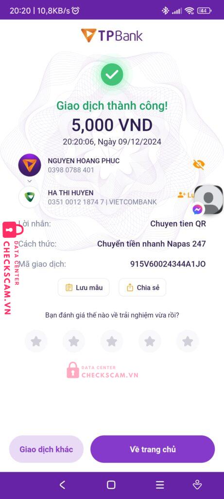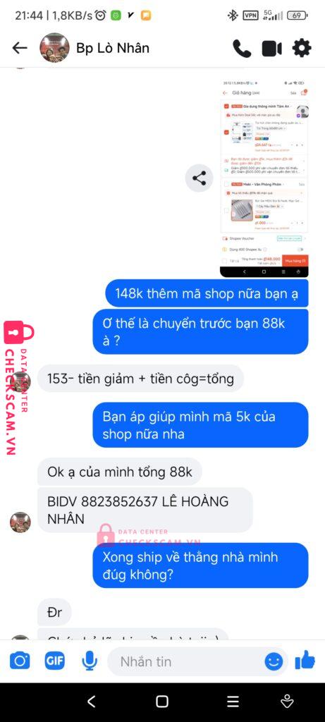 Scammer Alert: LÊ HOÀNG NHÂN Reported: March 7, 2025 Scammer Information Full Name: LÊ HOÀNG NHÂN Payment Gate: BIDV Payment Account: 8823852637 Category: Marketplace scams Source: Checkscam Evidence Files Report Description Lừa đảo mã giảm giá shopee, chuyển khoản xong cái là chặn luôn Comments Your comment Add Comment No comments yet. Be the first to share your experience with this scammer.