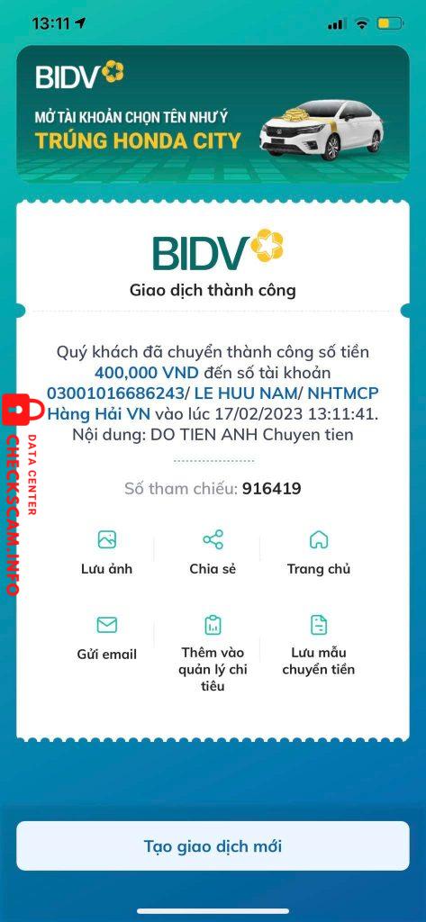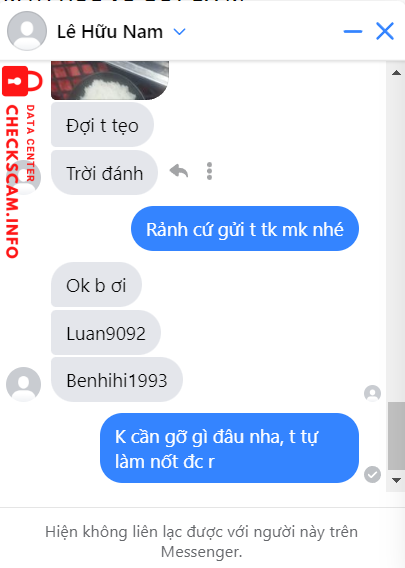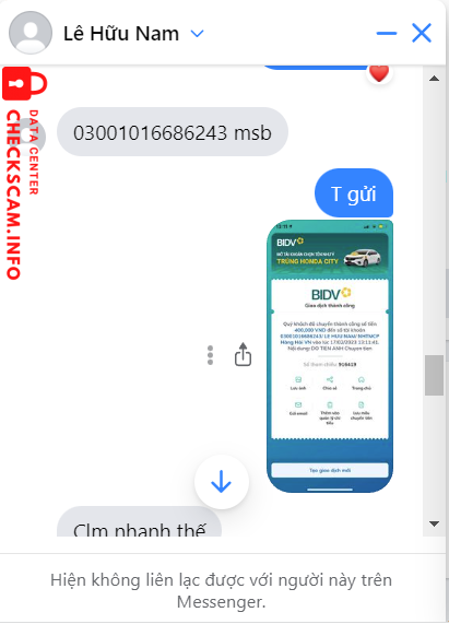 Scammer Alert: Lê Hữu Nam Reported: November 16, 2024 Scammer Information Full Name: Lê Hữu Nam Payment Gate: MSB Payment Account: 03001016686243 Category: Marketplace scams Source: Checkscam Evidence Files Report Description Mua bán nick game gửi tk mk không đúng và đã block fb Comments Your comment Add Comment No comments yet. Be the first to share your experience with this scammer.