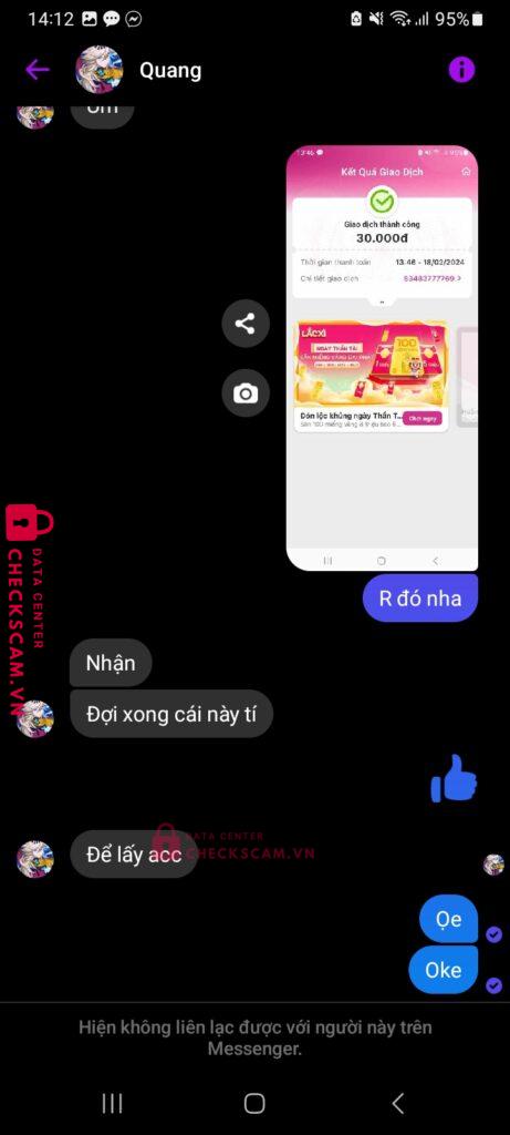 Scammer Alert: Lê Hữu quang Reported: November 16, 2024 Scammer Information Full Name: Lê Hữu quang Payment Gate: Mb bank Payment Account: 0963884946 Category: Marketplace scams Source: Checkscam Evidence Files Report Description Hắn scam!! Comments Your comment Add Comment No comments yet. Be the first to share your experience with this scammer.
