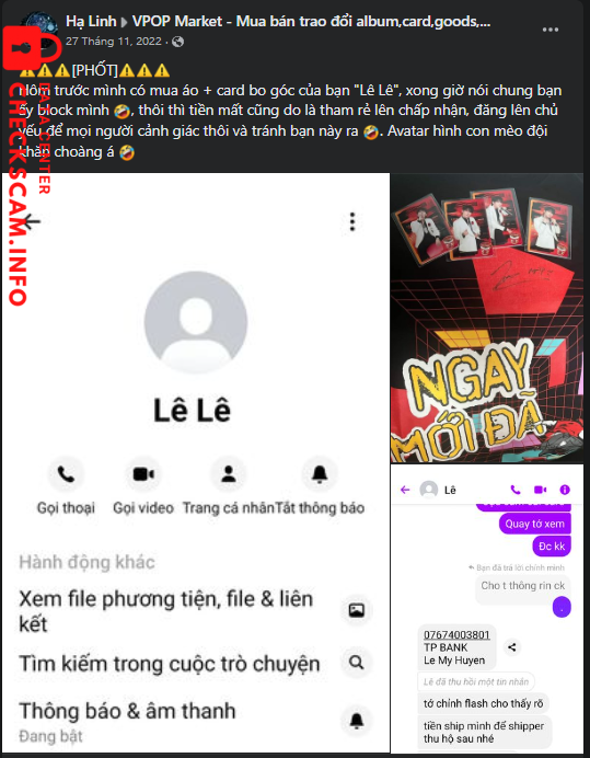 scam 810k thông qua group vpop market, sau một tuần người mua hỏi xin mã vận đơn thì khóa account. trước đó cũng đã từng lừa một người khác trong group