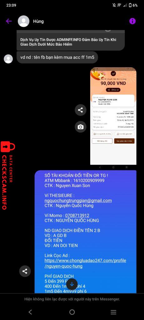 Scammer Alert: lê ngần hùng Reported: November 16, 2024 Scammer Information Full Name: lê ngần hùng Phone Number: 0818282819 Payment Gate: MB Bank Payment Account: 0818282819 Category: Marketplace scams Source: Checkscam Evidence Files Report Description Mua Acc FaceBook Kh Gửi Acc Scam Comments Your comment Add Comment No comments yet. Be the first to share your experience with this scammer.