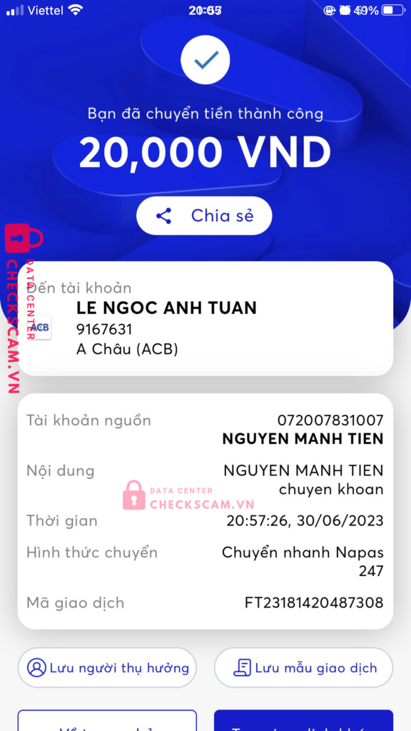 Scammer Alert: LE NGOC ANH TUAN ý Reported: November 16, 2024 Scammer Information Full Name: LE NGOC ANH TUAN ý Payment Gate: ACB Payment Account: 9167631 Category: Marketplace scams Source: Checkscam Evidence Files Report Description Có 20k cx scam quét wechat chán cái nhân cách tưởng tế như nào hoá ra lại scam chán luôn =)) Comments Your comment Add Comment No comments yet. Be the first to share your experience with this scammer.