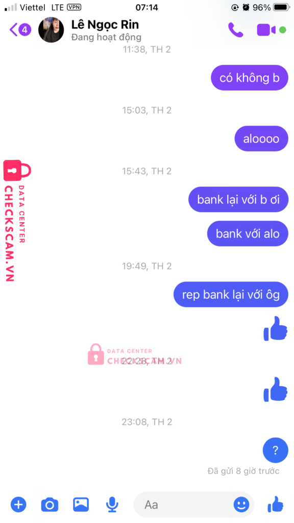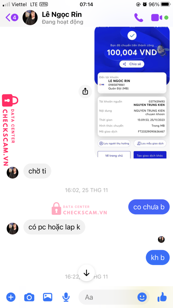 Scammer Alert: Lê Ngọc Rin Reported: November 16, 2024 Scammer Information Full Name: Lê Ngọc Rin Payment Gate: MB BANK Payment Account: 0985879861 Category: Marketplace scams Source: Checkscam Evidence Files Report Description Súc Vật Đi Lùa 100k Comments Your comment Add Comment No comments yet. Be the first to share your experience with this scammer.