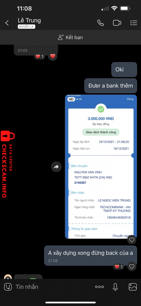 Scammer Alert: Le Ngoc Trung Kiên Reported: November 16, 2024 Scammer Information Full Name: Le Ngoc Trung Kiên Payment Gate: Teck Payment Account: 19036449362018 Category: Marketplace scams Source: Checkscam Evidence Files Report Description Nó lừa bán group. Mình ck xong nó chặn mình luôn. 6tr mn ah. Comments Your comment Add Comment No comments yet. Be the first to share your experience with this scammer.