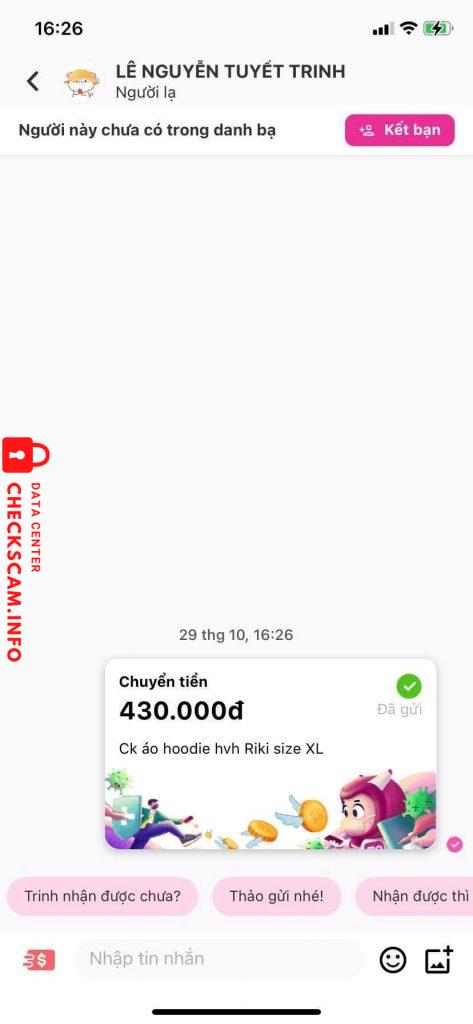 Scammer Alert: LÊ NGUYỄN TUYẾT TRINH