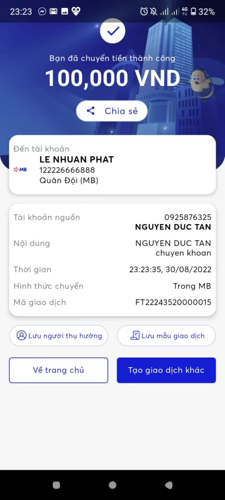 Scammer Alert: LÊ Nhuận Phát Reported: November 16, 2024 Scammer Information Full Name: LÊ Nhuận Phát Payment Gate: mb bank Payment Account: 122226666888 Category: Marketplace scams Source: Checkscam Evidence Files Report Description Kèo học dịch vụ Facebook chuyển xong rồi scam ạ Comments Your comment Add Comment No comments yet. Be the first to share your experience with this scammer.