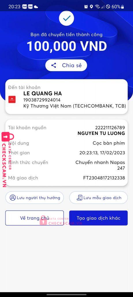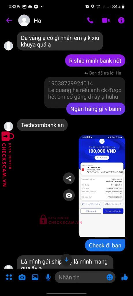 Scammer Alert: Le Quang Ha Reported: November 16, 2024 Scammer Information Full Name: Le Quang Ha Payment Gate: Techcombank Payment Account: 19038729924014 Category: Marketplace scams Source: Checkscam Evidence Files Report Description Lập nhiều acc nhiều độ tuổi, lừa chủ yếu đồ công nghệ gear Comments Your comment Add Comment No comments yet. Be the first to share your experience with this scammer.