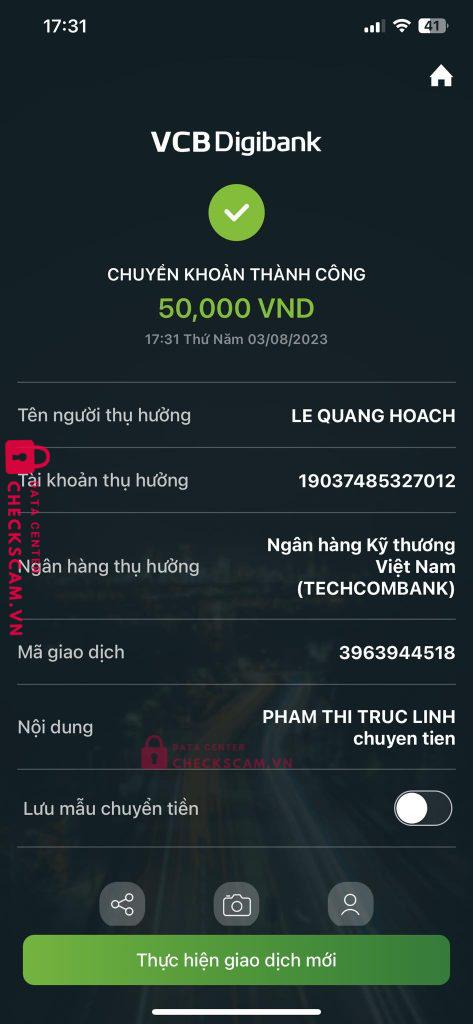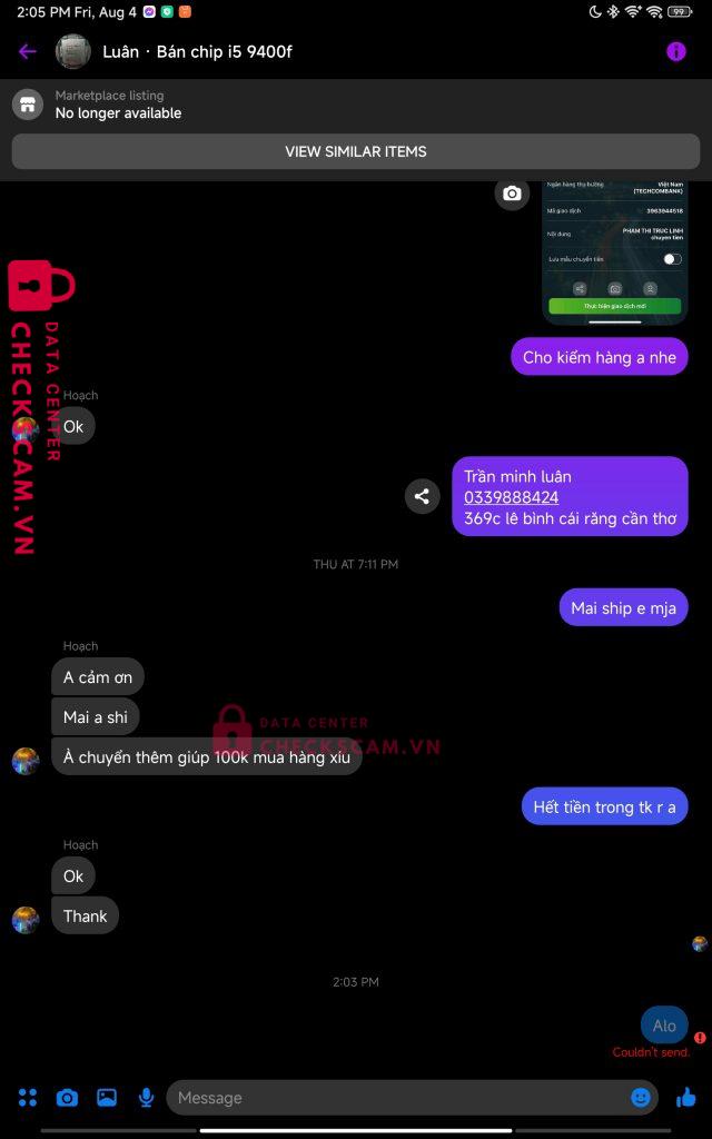 Scammer Alert: Le quang hoach Reported: November 16, 2024 Scammer Information Full Name: Le quang hoach Payment Gate: Techcombank Payment Account: 19037485327012 Category: Marketplace scams Source: Checkscam Evidence Files Report Description Bán đồ kiêu cọc cọc xong block scam Comments Your comment Add Comment No comments yet. Be the first to share your experience with this scammer.