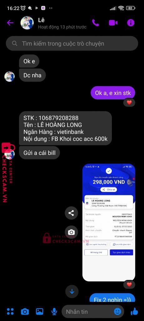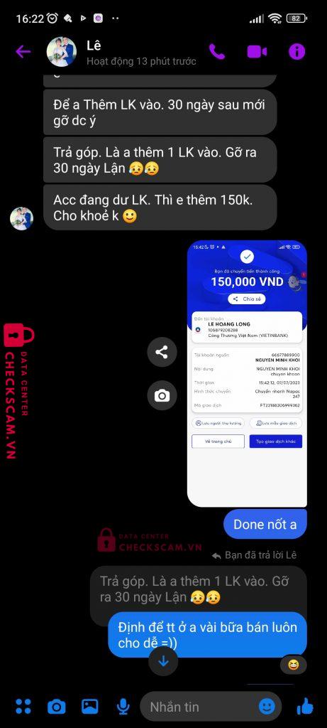 Scammer Alert: LE THANH LONG Reported: November 16, 2024 Scammer Information Full Name: LE THANH LONG Payment Gate: Vietinbank Payment Account: 106879208288 Category: Marketplace scams Source: Checkscam Evidence Files Report Description Bạn này fake ad group rồi scam mình 600k Comments Your comment Add Comment No comments yet. Be the first to share your experience with this scammer.