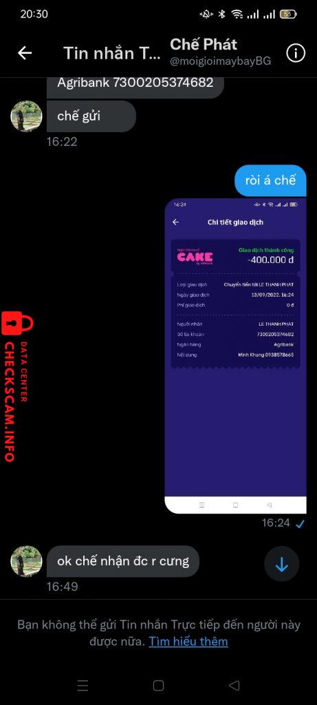Scammer Alert: LE THANH PHAT Reported: November 16, 2024 Scammer Information Full Name: LE THANH PHAT Payment Gate: Agribank Payment Account: 7300205374682 Category: Marketplace scams Source: Checkscam Evidence Files Report Description lừa đảo trên twitter , dùng danh nghĩa môi giới lừa đảo những ng có hoang cảnh khó khăn Comments Your comment Add Comment No comments yet. Be the first to share your experience with this scammer.