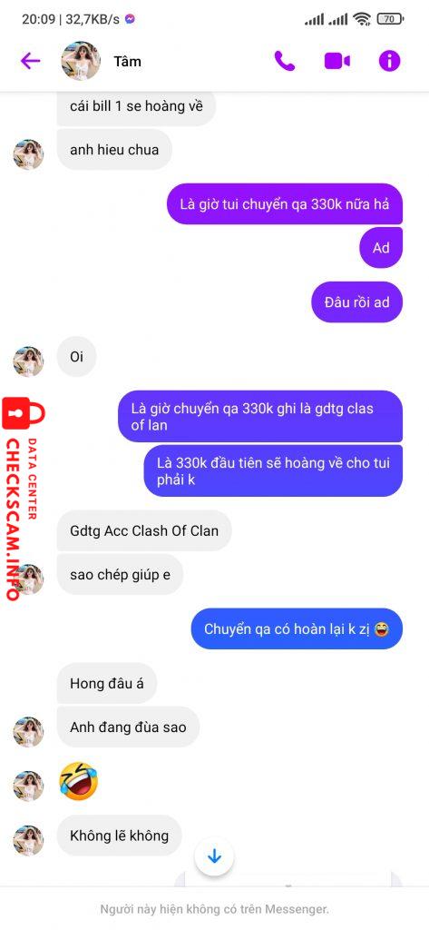 Mình bị lừa tổng cộng là 690k, mình mua bán tài khoản clas of clans, bạn này là admin giao dịch trung gian nhưng mình k ngờ lại lừa và chiếm đoạt tài sản của mình. Bạn kia là admin của group hơn 200000 thành viên. Mong được xem xét ạ