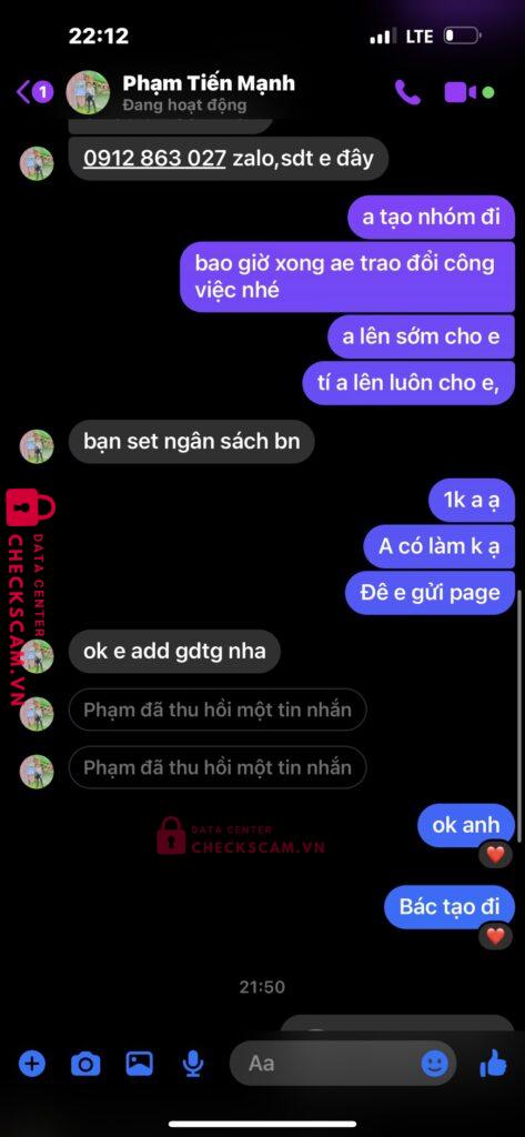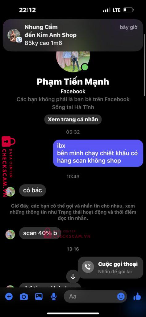 TÔI CÓ GIAO DỊCH VỚI 1 ÔNG TÊN LÀ PHẠM MẠNH TIẾN ( LINK FB https://www.facebook.com/ManhAgencyIT ) VỀ CHẠY CHIẾT KHẤU,2 BÊN THỎA THUẬN VỀ GIÁ CẢ XONG XUÔI ,Ông Tiếng có tạo 1 nhsom 3 người bao gồm tôi và ông TIến và ÔNG LÊ THẾ PHONG (link https://www.facebook.com/profile.php?id=100025378667776) vào để làm GDTG ,(sau đó tôi biết được rằng ông Phong và Tiến là 1 vì chặn tôi và lừa tôi).Sau khi tao nhóm GDTG tôi cũng đã có check ,vì thấy ngươi này không có quen nên tôi đã check xem có uy tín không,tôi check trên checkscan.vn thì không có ra,sau đó tôi vào link fb của ông Phong thì thì thấy giao diện và các thứ khá khá giống 1 gdtg thật,sau đó tôi kéo xuống dưới có 1 bài viết khá khá tym tôi có thấy 1 đường link dẫn đến checkscan tôi ấn vào thì giao diện nó giống y như hệt wed thật.Hóa ra lại không phải wed thật checkscan còn của nó là checkcsan.vn >Bản thân đã rất cẩn thận nhưng vẫn không thoát khỏi kiếp nạn>Nhưng bản thân thấy rằng tên tội phạm này rất là hổ báo,thách thức và ngông chiến.Dùng cả nhưng page và hội nhóm đã có từ lâu để đi lừa,tiếp theo hắn dùng facebook thật để đi lừa mà vẫn chưa bị bắt vẫn còn nhởn nhơ ngoài kia.Bản thân thấy sự việc khá nghiệm trọng nên đã có đơn trình báo đến cơ quan chức năng có thẩm quyền,và sẽ chia sẻ lên các hội nhóm để mọi tránh và mọi người chung tay tìm ra kẻ gian dối này>(https://admin.checkscsam.vn/le-the-phong) đây là đường link dễ đến checkcsan của hắn,hắn không phải chuyên nghiệp mà là rất liều lĩnh và đáng sợ mọi người ạ