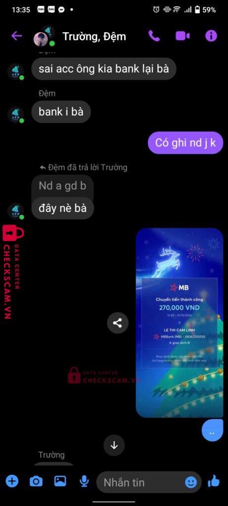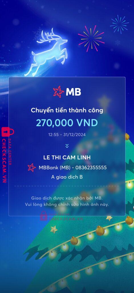 Scammer Alert: LE THI CAM LINH Reported: March 7, 2025 Scammer Information Full Name: LE THI CAM LINH Payment Gate: MB Bank Payment Account: 08362355555 Category: Marketplace scams Source: Checkscam Evidence Files Report Description Comments Your comment Add Comment No comments yet. Be the first to share your experience with this scammer.