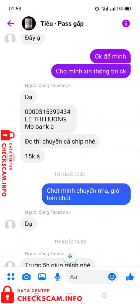 Scammer Alert: Lê Thị Hương Reported: November 16, 2024 Scammer Information Full Name: Lê Thị Hương Payment Gate: MB_NH TMCP Quan Doi Payment Account: 0000315399434 Category: Marketplace scams Source: Checkscam Evidence Files Report Description Chuẩn khoản xong liền mất hút Comments Your comment Add Comment No comments yet. Be the first to share your experience with this scammer.