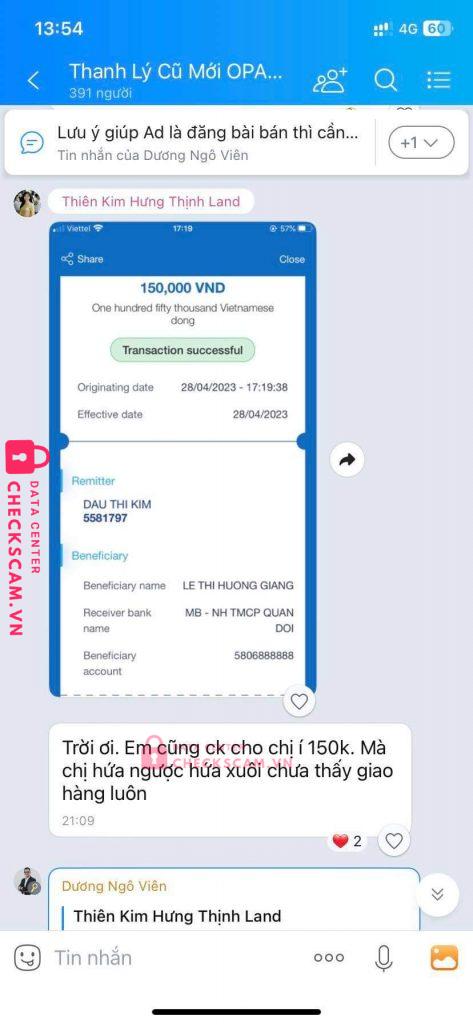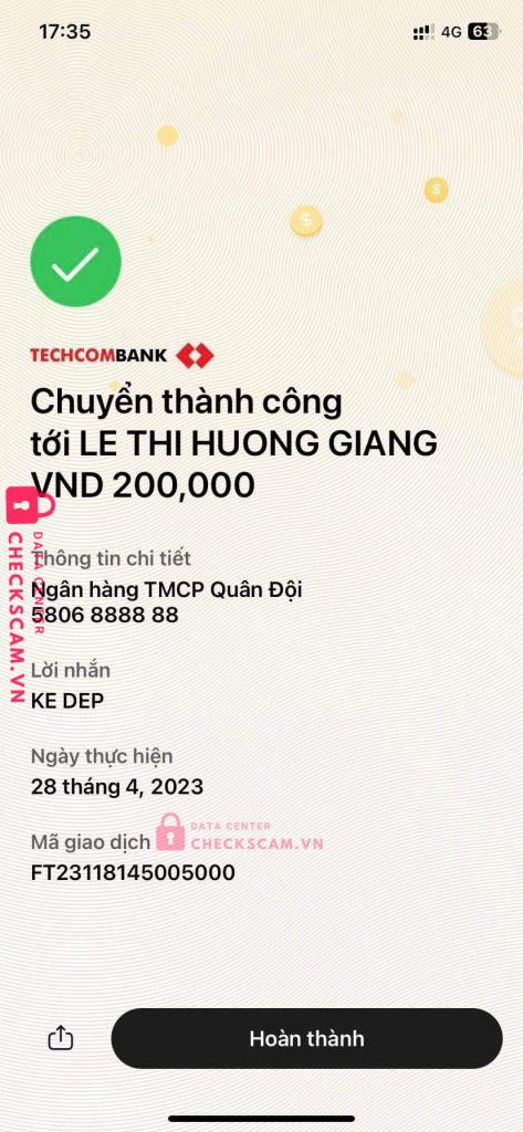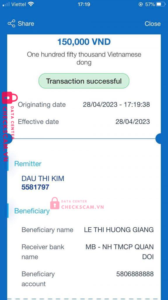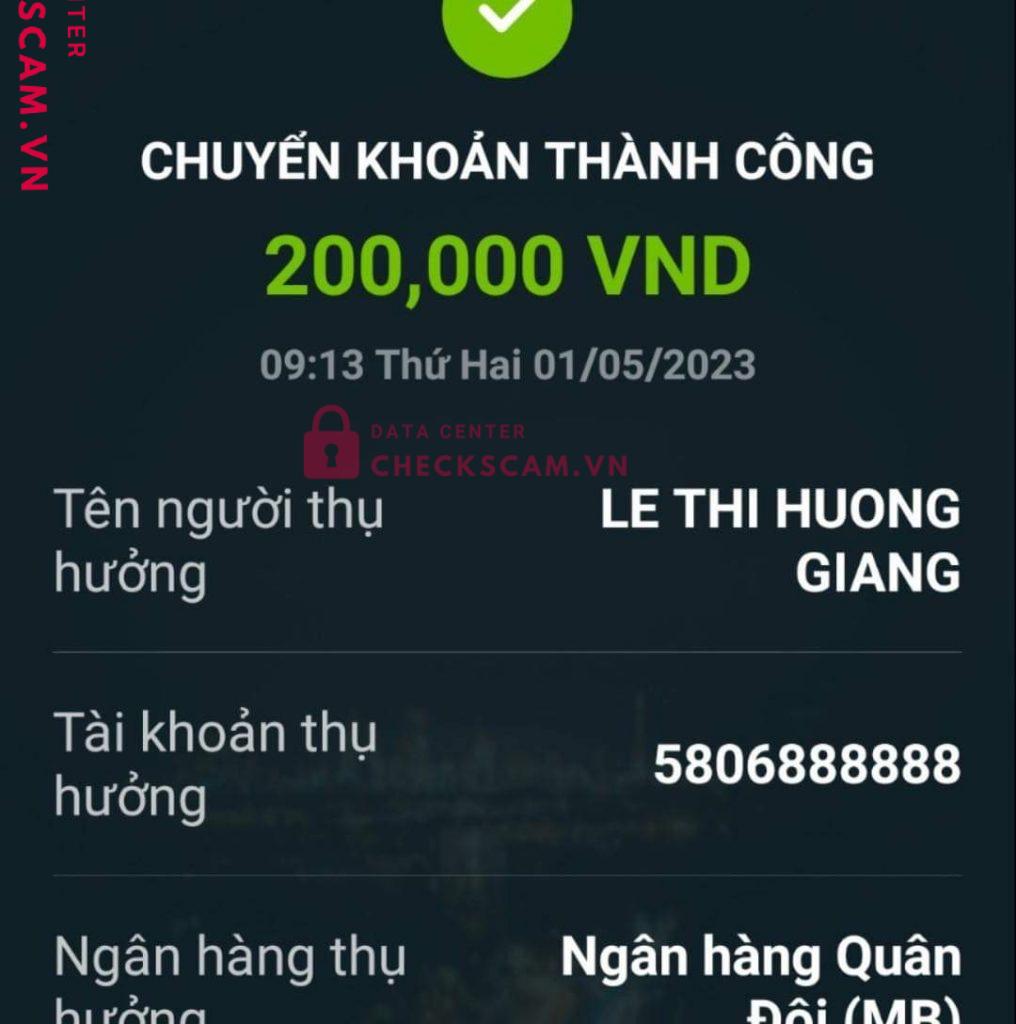 Scammer Alert: LE THI HUONG GIANG Reported: November 16, 2024 Scammer Information Full Name: LE THI HUONG GIANG Payment Gate: Ngân hàng TMCP Quân Đội - MB Payment Account: 5806888888 Category: Marketplace scams Source: Checkscam Evidence Files Report Description Chuyển khoản đủ tiền hàng nhưng không giao hàng! Comments Your comment Add Comment No comments yet. Be the first to share your experience with this scammer.