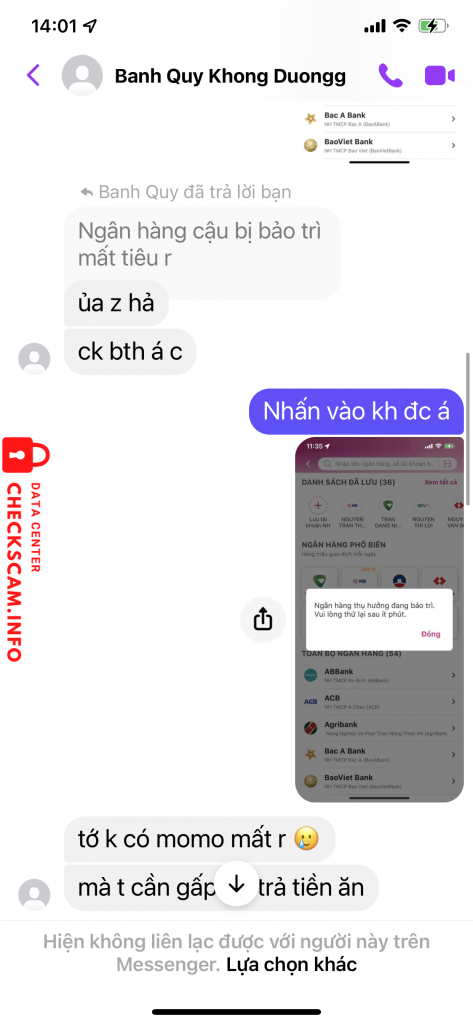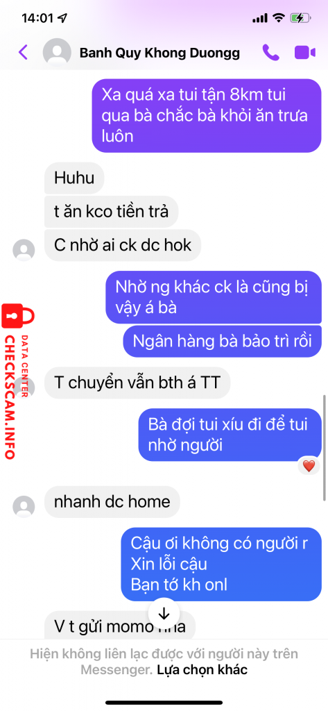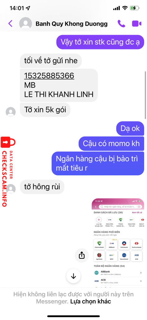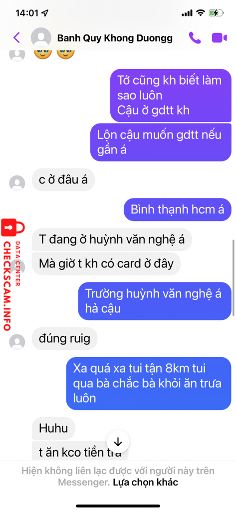 Lừa rất nhiều người, vì lừa tiền ít nên là kh nhiều người truy cứu nên có thể không bị phát hiện lần tiếp theo khi đi lừa ng khác, đổi tên face rất nhiều lần để lừa ng khác, hay đưa mặt hàng hot hoặc rẻ gấp đôi thị trường để câu dẫn nạn nhân, hiện tại vì sợ phát hiện nên một ngày nó lừa ng khác nó có thể nhờ một ng hay chuyên về chuyển tiền dùm lợi dụng cách đó nó lấy tài khoản ngân hàng thông tin của ng chuyển tiền dùm để lừa người khác để cho ngta kh biết là nó và dễ dàng giao dịch với nó