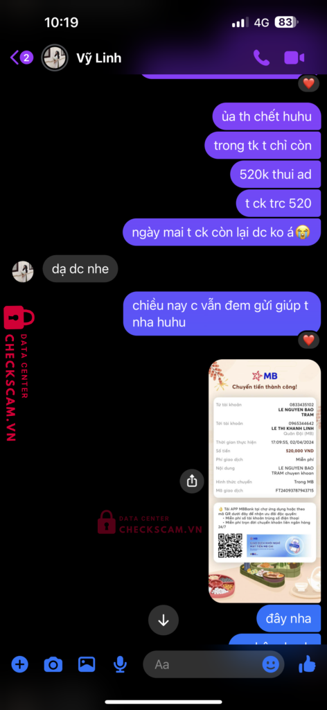 Scammer Alert: Lê Thị Khánh Linh Reported: November 16, 2024 Scammer Information Full Name: Lê Thị Khánh Linh Payment Gate: mb bank Payment Account: 0965344642 Category: Marketplace scams Source: Checkscam Evidence Files Report Description lừa 2m của tớ và 1 ng khác dùng địa chỉ lẫn sđt giả Comments Your comment Add Comment No comments yet. Be the first to share your experience with this scammer.