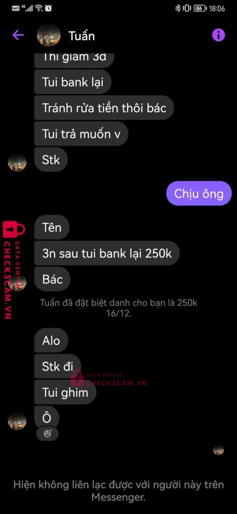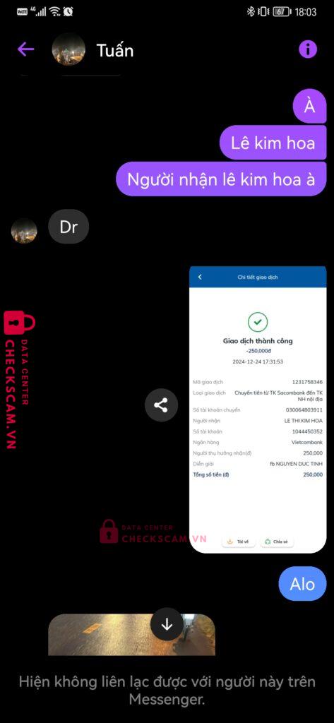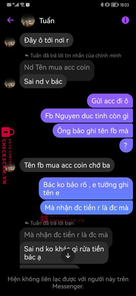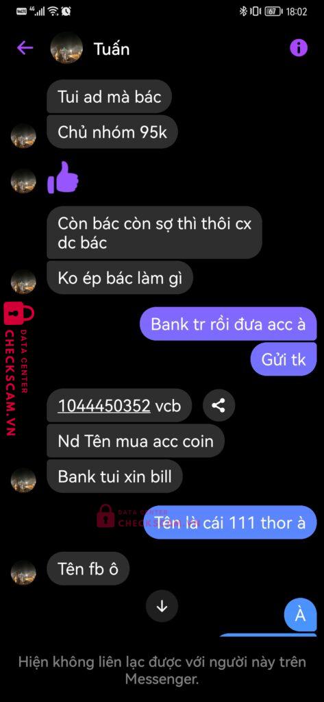 Scammer Alert: Lê thị kim hoa Reported: March 7, 2025 Scammer Information Full Name: Lê thị kim hoa Payment Gate: Vietcombank Payment Account: 1044450352 Category: Marketplace scams Source: Checkscam Evidence Files Report Description Scam mua bán acc coin master Comments Your comment Add Comment No comments yet. Be the first to share your experience with this scammer.