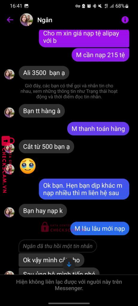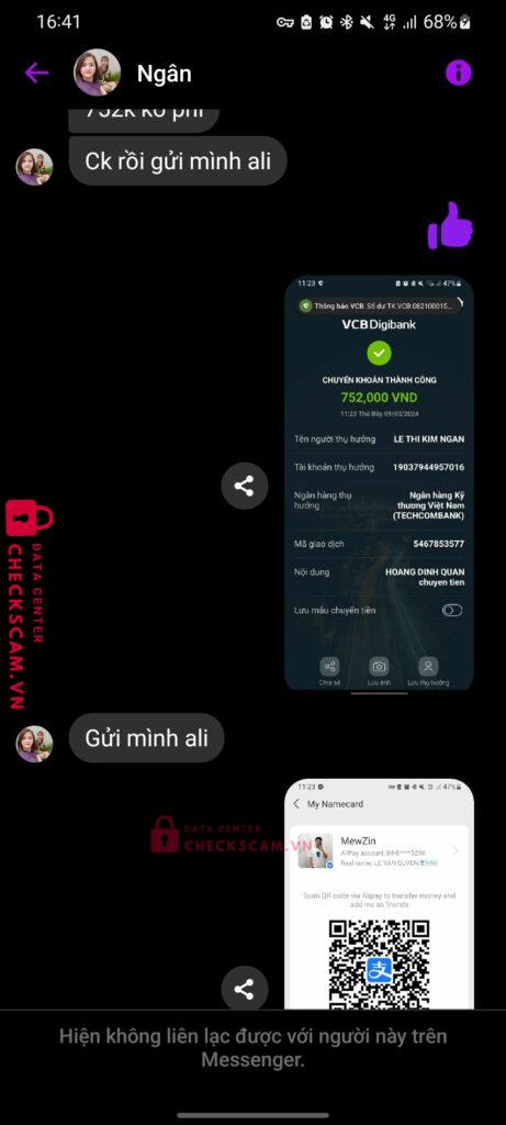 Scammer Alert: LE THI KIM NGAN Reported: November 16, 2024 Scammer Information Full Name: LE THI KIM NGAN Payment Gate: Techcombank Payment Account: 19037944957016 Category: Marketplace scams Source: Checkscam Evidence Files Report Description Lừa đảo nạp tệ alipay Comments Your comment Add Comment No comments yet. Be the first to share your experience with this scammer.