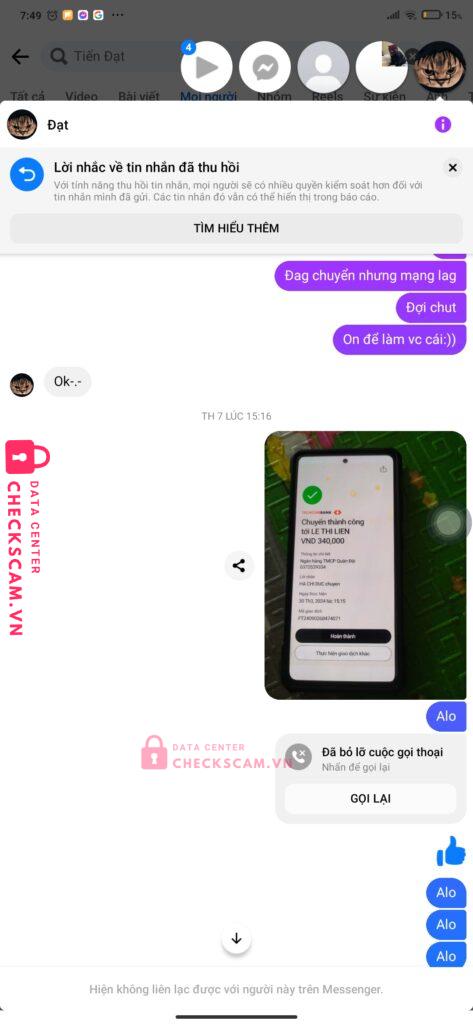 Scammer Alert: LE THI LIEN Reported: November 16, 2024 Scammer Information Full Name: LE THI LIEN Payment Gate: Mb Payment Account: 0372529334 Category: Marketplace scams Source: Checkscam Evidence Files Report Description Nó loằng ngoằng đưa sai mk xog cứ bảo đợi xong bảo sáng mai rồi nó chặn tin nhắn với fb Comments Your comment Add Comment No comments yet. Be the first to share your experience with this scammer.