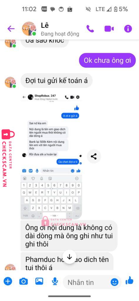 Scammer Alert: Le thi phuong dung Reported: March 7, 2025 Scammer Information Full Name: Le thi phuong dung Payment Gate: Agribank Payment Account: 4808205157302 Category: Marketplace scams Source: Checkscam Evidence Files Report Description Scam cho wed mua bán acc : ShopGame24h .Shop Comments Your comment Add Comment No comments yet. Be the first to share your experience with this scammer.