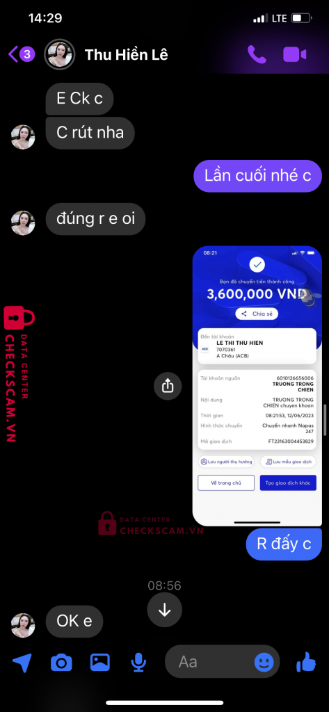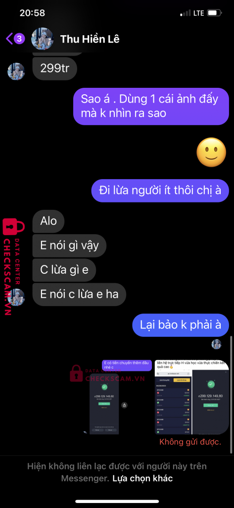 Scammer Alert: Lê thị thu hiền Reported: November 16, 2024 Scammer Information Full Name: Lê thị thu hiền Phone Number: 0362364790 Payment Gate: Á Châu Payment Account: 7070361 Category: Marketplace scams Source: Checkscam Evidence Files Report Description Lừa đảo hơn 30 triệu của mình . Nên tiêu diệt bọn lừa đảo này Comments Your comment Add Comment No comments yet. Be the first to share your experience with this scammer.