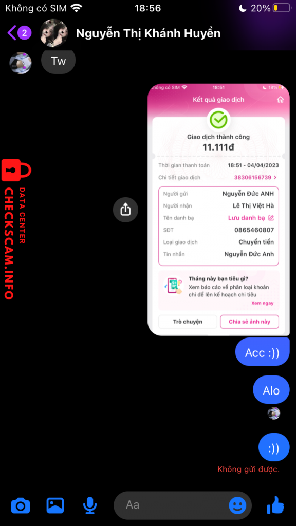 Scammer Alert: Lê Thị Việt Hà Reported: November 16, 2024 Scammer Information Full Name: Lê Thị Việt Hà Phone Number: 0865460807 Payment Gate: Momo Payment Account: 0865460807 Category: Marketplace scams Source: Checkscam Evidence Files Report Description Scam Tiền , Scam acc Game Comments Your comment Add Comment No comments yet. Be the first to share your experience with this scammer.