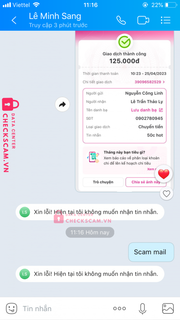 Scammer Alert: Lê Trần Thảo Ly Reported: November 16, 2024 Scammer Information Full Name: Lê Trần Thảo Ly Phone Number: 0902790945 Payment Gate: Momo Payment Account: 0902790945 Category: Marketplace scams Source: Checkscam Evidence Files Report Description Nick zalo nó tên Lê Minh Sang nhé scam hotmail rdpass Comments Your comment Add Comment No comments yet. Be the first to share your experience with this scammer.
