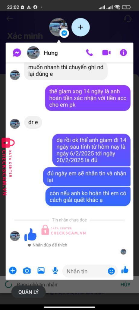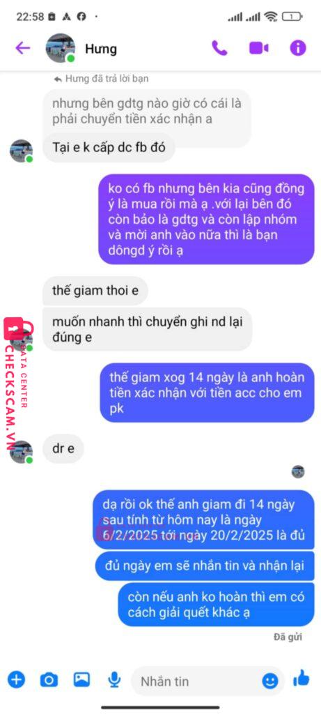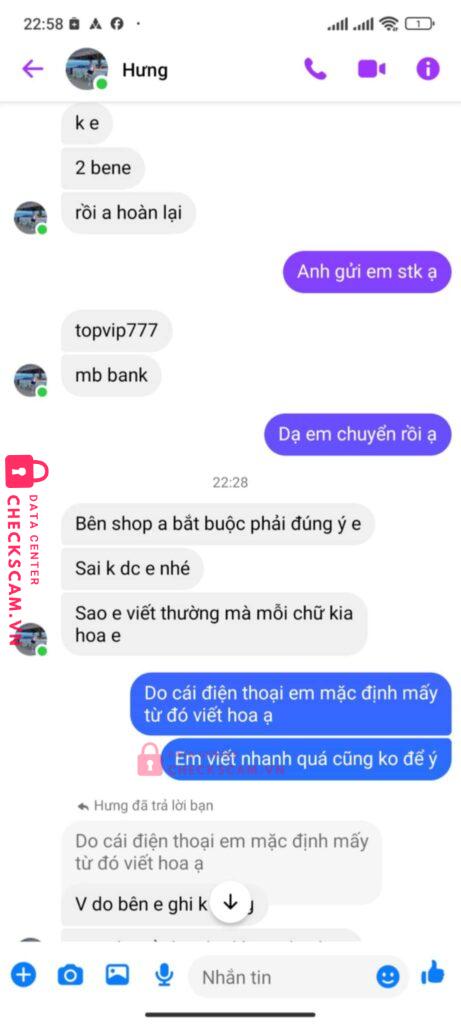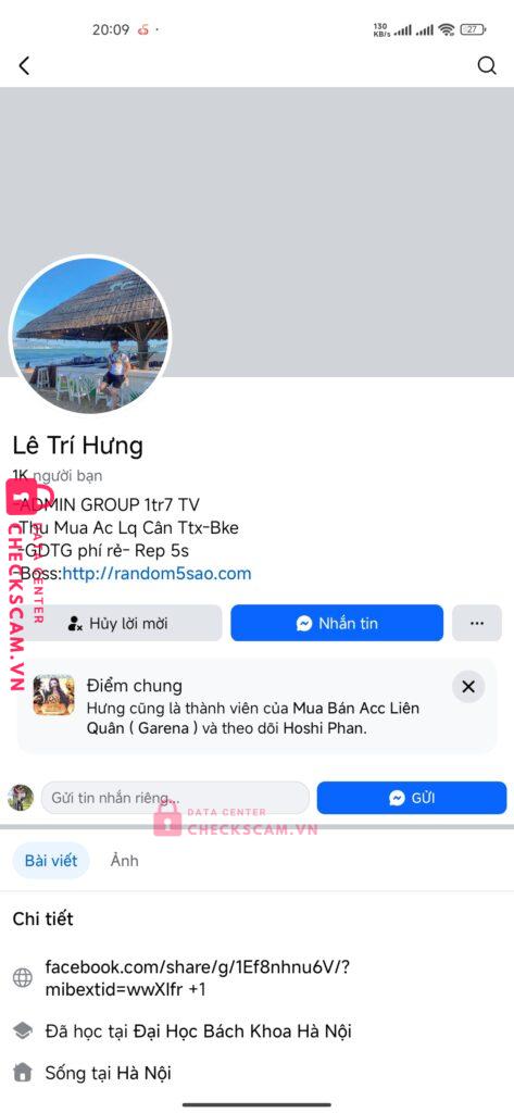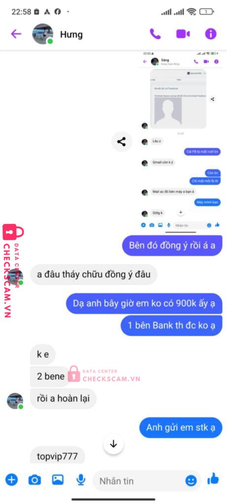 Scammer Alert: Lê Trí Hưng Reported: May 10, 2025 Scammer Information Full Name: Lê Trí Hưng Payment Gate: Mb bank Payment Account: Topvip777 Category: Marketplace scams Source: Checkscam Evidence Files Report Description Dùng nhiều tài khoản Facebook để gạ mua acc rồi lấy acc Facebook chính vào trung gian xong lừa đảo. Comments Your comment Add Comment No comments yet. Be the first to share your experience with this scammer.