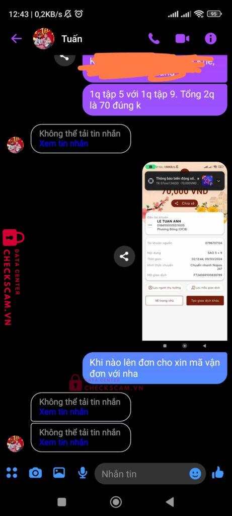 Scammer Alert: LE TUAN ANH Reported: November 16, 2024 Scammer Information Full Name: LE TUAN ANH Payment Gate: Vietcombank Payment Account: 0184100005511005 Category: Marketplace scams Source: Checkscam Evidence Files Report Description Mình hỏi mua rồi chuyển khoản. Sau đó ít ngày không thấy hồi đáp cũng như chưa thấy hàng gửi đến, mình vào xem đoạn chat thì bị nó chặn Comments Your comment Add Comment No comments yet. Be the first to share your experience with this scammer.