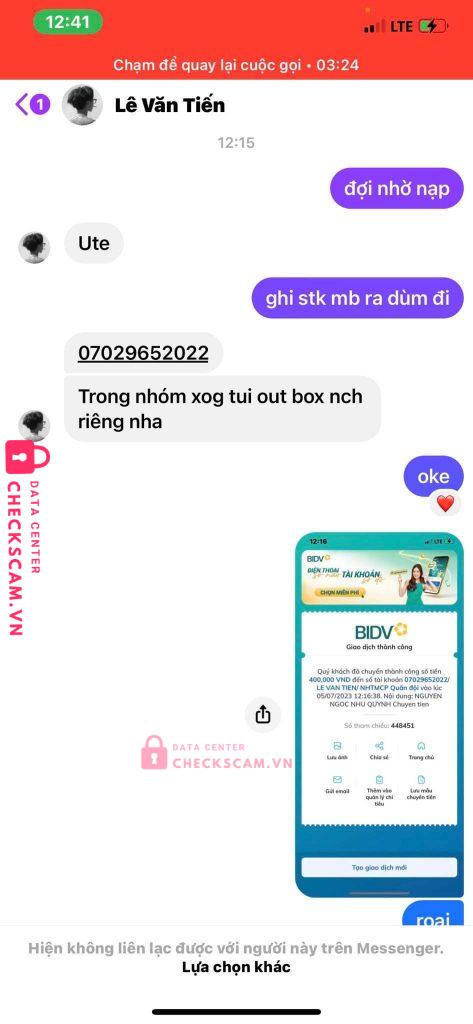 Scammer Alert: Lê Văn Tiến Reported: November 16, 2024 Scammer Information Full Name: Lê Văn Tiến Payment Gate: MB Bank Payment Account: 07029652022 Category: Marketplace scams Source: Checkscam Evidence Files Report Description th này scam Comments Your comment Add Comment No comments yet. Be the first to share your experience with this scammer.