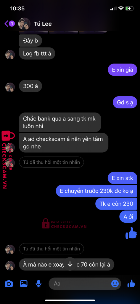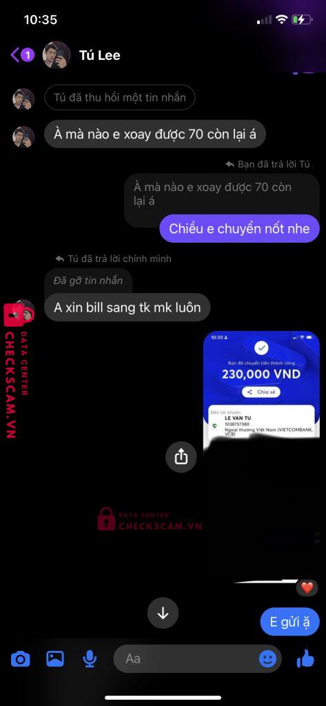 Scammer Alert: Lê Văn Tú Reported: November 16, 2024 Scammer Information Full Name: Lê Văn Tú Payment Gate: Ngoại Thương Việt Nam( Vietcombank Payment Account: 1038757380 Category: Marketplace scams Source: Checkscam Evidence Files Report Description Gửi cả link của checkscam mình tin tưởng rồi đến lúc gửi tiền chuyển bill rồi lại block =))) ko hiểu nỗi Comments Your comment Add Comment No comments yet. Be the first to share your experience with this scammer.