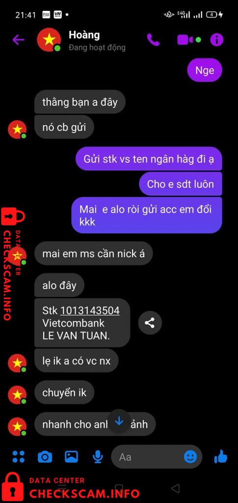 Scammer Alert: Le Van Tuan Reported: November 16, 2024 Scammer Information Full Name: Le Van Tuan Phone Number: 0374813393 Payment Gate: Vietcombank Payment Account: 1013143504 Category: Marketplace scams Source: Checkscam Evidence Files Report Description scam Có stk cho aee check 0374813393 ai nạn nhân gọi điện chửi cmn nhé :)) Mai rãnh t check danh bạ . Kím hết số đt gia đình nó cho aee luôn . Comments Your comment Add Comment No comments yet. Be the first to share your experience with this scammer.