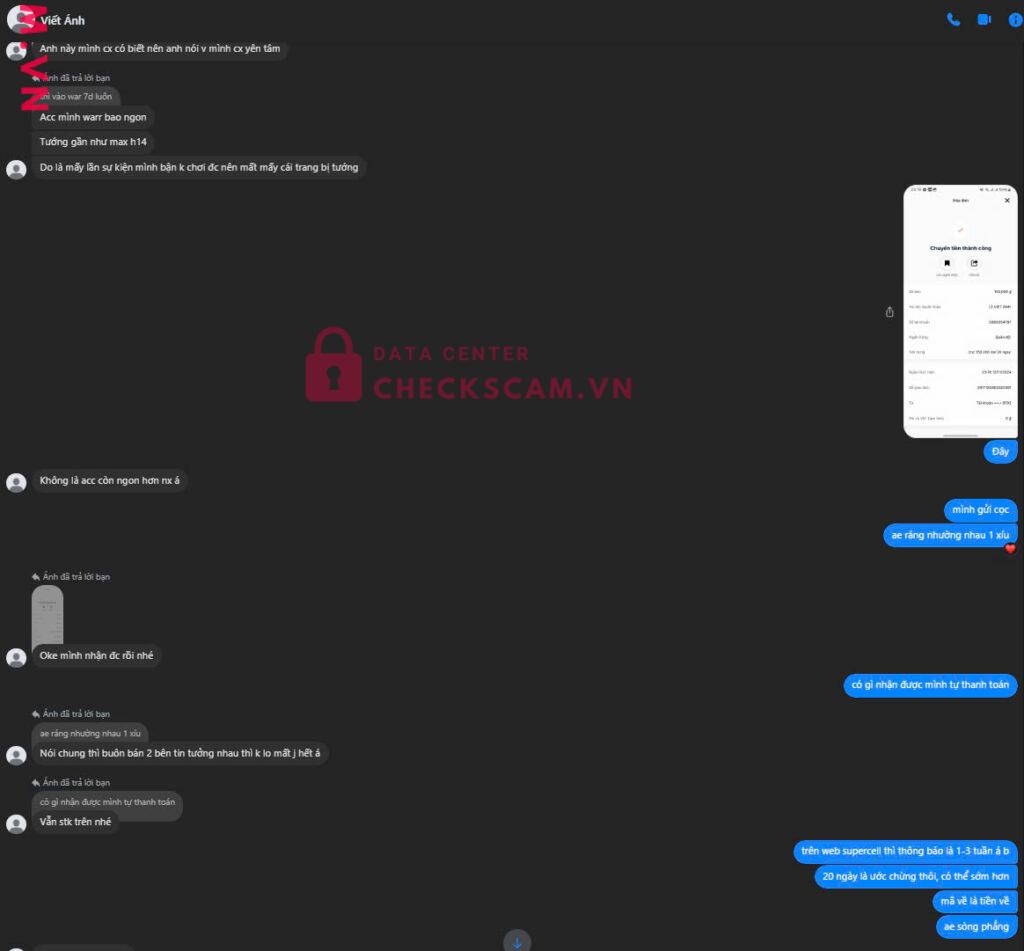 tôi có liên hệ trên nhóm mua bán tài khoản game clash of clans, về cơ bản chỉ là giao dịch nhỏ, thanh niên này đã lừa cọc và hiện không liên lạc được, nhắn không trả lời nhiều ngày, facebook thì vẫn online.