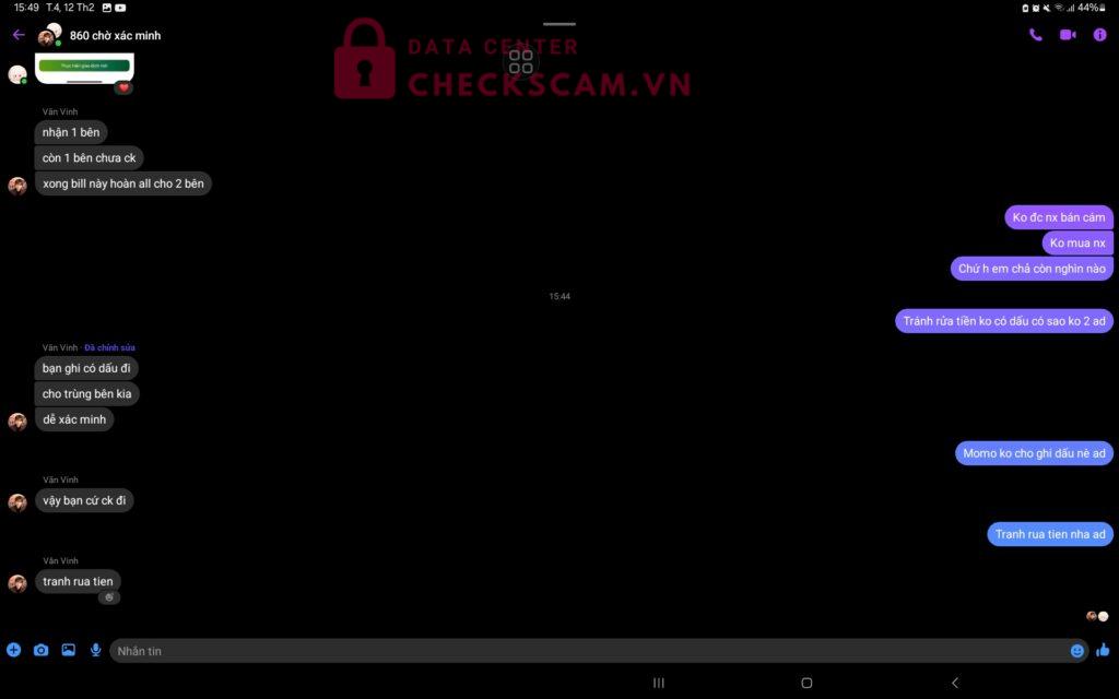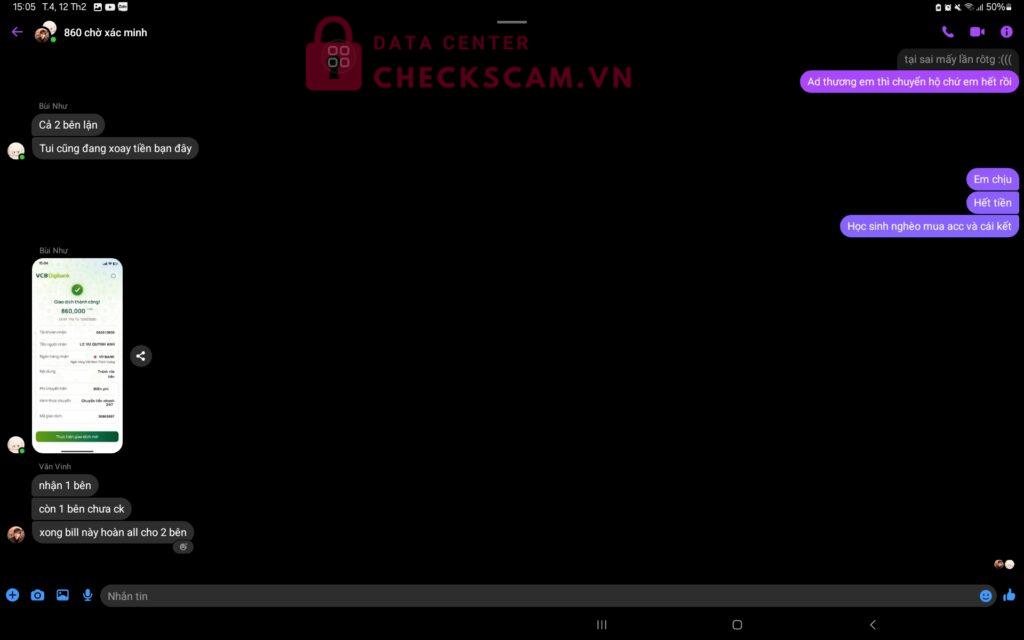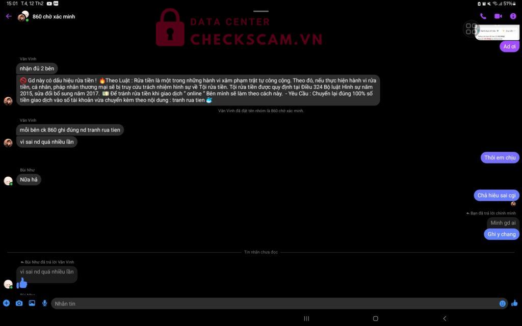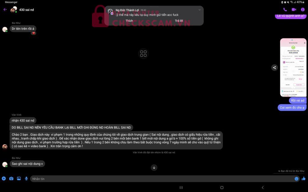 Đầu tiên em đc 1 bạn gạ mua acc trên facebook, rồi bạn mời ad này vào tiền acc là 420+10 ngàn phí giao dịch,nma khi em chuyển sai ad lại bảo chuyển 100% bill sai rồi mới hoàn tiền,càng ngày số tiền lên tới 2 triệu 580 em ko thể kham nổi đến lúc em chuyển đủ thì người bán out group em lại bị gán tội rửa tiền và ko đc chuyển lại tiền trong khi em ko làm gì sai hết. Em nghi ngờ 2 người đấy có cấu kết để scam em,em có bill chuyển tiền và ảnh.xin đòi lại công bằng cho em
