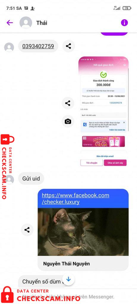 Scammer Alert: Le Xuan Thai Reported: November 16, 2024 Scammer Information Full Name: Le Xuan Thai Phone Number: 0393402759 Payment Gate: momo Payment Account: 0393402759 Category: Marketplace scams Source: Checkscam Evidence Files Report Description Thái ơi hiện hồn thái ơi Mất hết giờ :)) Comments Your comment Add Comment No comments yet. Be the first to share your experience with this scammer.