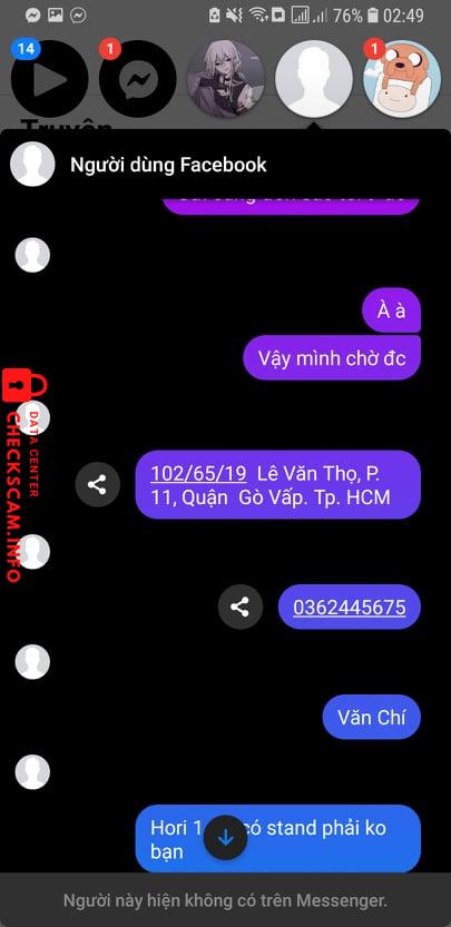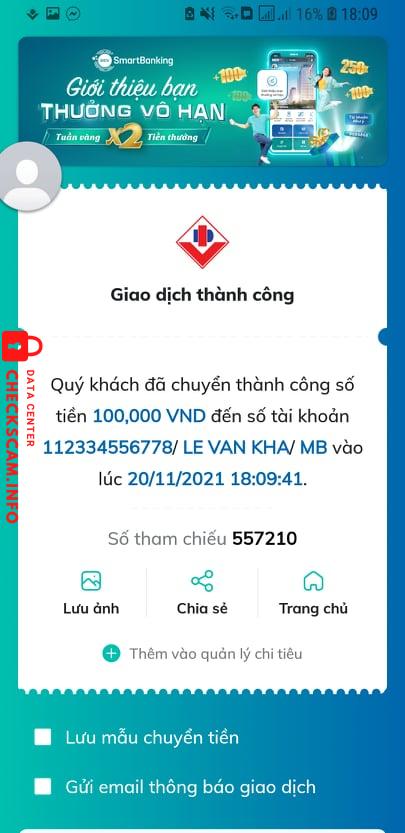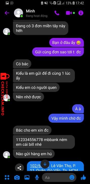Scammer Alert: Lên Văn Kha Reported: November 16, 2024 Scammer Information Full Name: Lên Văn Kha Payment Gate: MB Payment Account: 112334556778 Category: Marketplace scams Source: Checkscam Evidence Files Report Description lừa đảo- bắt ck tiền 100k để mua truyện hẹn 25 ship hàng mà sáng 21 ib lại hỏi hàng thì đã chặn luôn tk mình + xóa hết toàn bộ tn. Comments Your comment Add Comment No comments yet. Be the first to share your experience with this scammer.