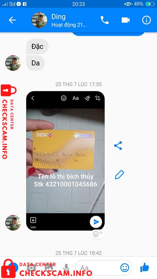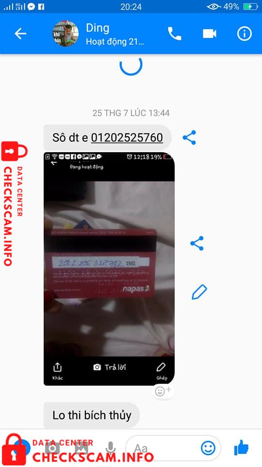 Làm phiền chợ mình chút ạ, ace nào biết thông tin về địa chỉ vk ck lừa đảo này ko chỉ dùm e với ạ, e có mua tạ bơ sáp ngon của vk ck này nó bảo gửi trước nó 2trieu khi nào nhận bơ chuyển tiếp số còn lại, nó bảo thứ 6 e nhận được hàng vậy mà thứ 7 rồi vẫn không thấy đâu từ hôm qua đến giờ gọi điện nhắn tin ko trả lời luôn. Mong mọi người giúp đỡ tìm ra địa chỉ hoặc khu vực nó sống với ạ. E cảm ơn cả nhà.