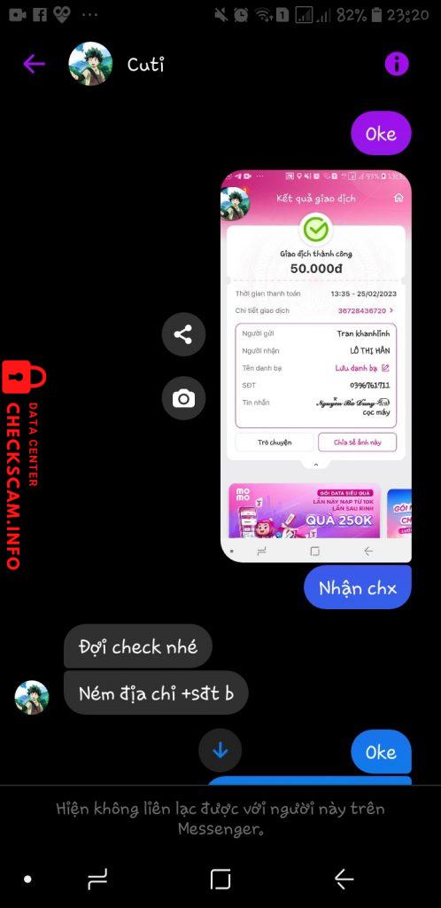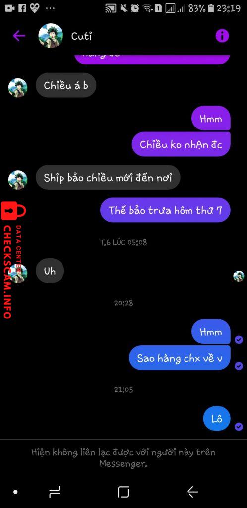 Scammer Alert: Lô thị hân Reported: November 16, 2024 Scammer Information Full Name: Lô thị hân Phone Number: 0396761711 Payment Gate: Mb bank Payment Account: 0396761711 Category: Marketplace scams Source: Checkscam Evidence Files Report Description Mik mua điện thoại bên nó xong cọc tiền để nó ship mãi k thấy ship mik ib nó chặn luôn Comments Your comment Add Comment No comments yet. Be the first to share your experience with this scammer.