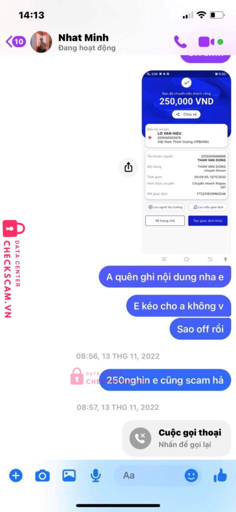 Scammer Alert: LO VAN HIEU Reported: November 16, 2024 Scammer Information Full Name: LO VAN HIEU Payment Gate: Vp Bank Payment Account: 2556165555678 Category: Marketplace scams Source: Checkscam Evidence Files Report Description Lừa đảo tăng mắt live tiktok , anh em chú ý nhé Comments Your comment Add Comment No comments yet. Be the first to share your experience with this scammer.