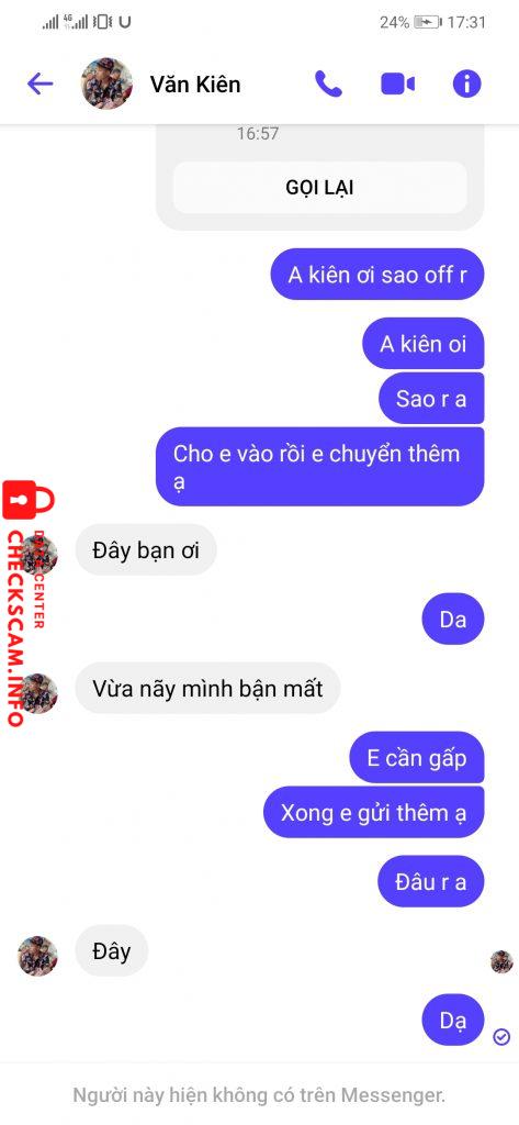 Scammer Alert: Lô Văn Kiên Reported: November 16, 2024 Scammer Information Full Name: Lô Văn Kiên Phone Number: 0837068885 Payment Gate: Đông a bank Payment Account: 0111070499 Category: Marketplace scams Source: Checkscam Evidence Files Report Description Làm dịch vu fb nhưng nhận tiền xong rồi block Comments Your comment Add Comment No comments yet. Be the first to share your experience with this scammer.