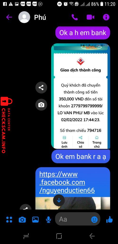 Scammer Alert: Lo Van Phu Reported: November 16, 2024 Scammer Information Full Name: Lo Van Phu Payment Gate: Mb bank Payment Account: 2779799799999 Category: Marketplace scams Source: Checkscam Evidence Files Report Description Lò Văn Phú Bịp 100k Follow Comments Your comment Add Comment No comments yet. Be the first to share your experience with this scammer.