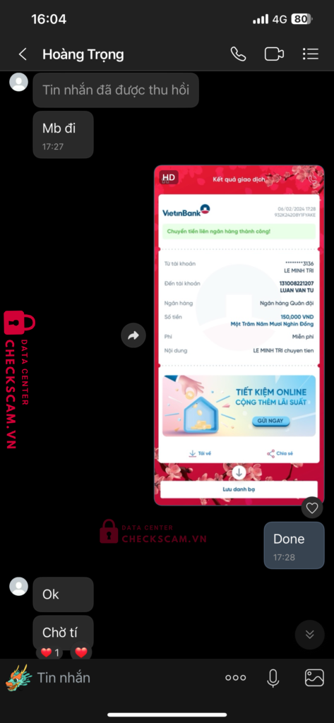 Scammer Alert: LUAN VAN TU Reported: November 16, 2024 Scammer Information Full Name: LUAN VAN TU Payment Gate: TP Bank Payment Account: 93119793939 Category: Marketplace scams Source: Checkscam Evidence Files Report Description Tôi có mua acc của stk trên với giá 150k Và nó gửi sai tk và mật khẩu tôi kêu hoàn tiền thì nó cứ nói sang vấn đề khác và chặn tôi Comments Your comment Add Comment No comments yet. Be the first to share your experience with this scammer.
