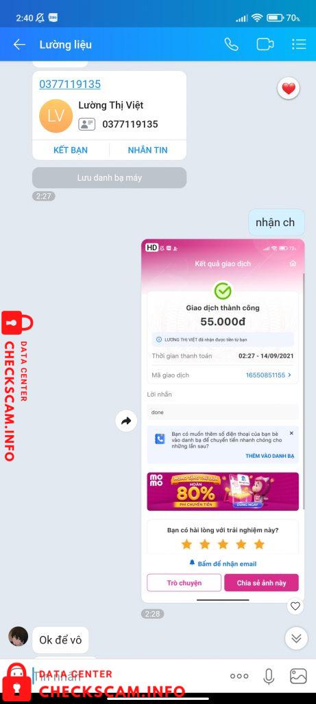 Scammer Alert: Lường Thị Việt Reported: November 16, 2024 Scammer Information Full Name: Lường Thị Việt Phone Number: 0377119135 Payment Gate: MoMo Payment Account: 0377119135 Category: Marketplace scams Source: Checkscam Evidence Files Report Description bán fb scam 55k Comments Your comment Add Comment No comments yet. Be the first to share your experience with this scammer.