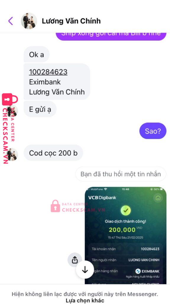 Scammer Alert: Lương Văn Chính Reported: March 7, 2025 Scammer Information Full Name: Lương Văn Chính Payment Gate: Eximbank Payment Account: 100284623 Category: Marketplace scams Source: Checkscam Evidence Files Report Description Lừa Cọc bán đt google pixel 6 pro Comments Your comment Add Comment No comments yet. Be the first to share your experience with this scammer.