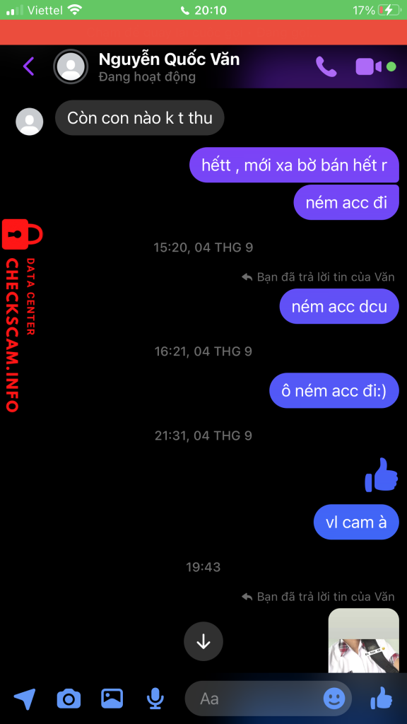 Scammer Alert: Lưu Đức Sang Reported: November 16, 2024 Scammer Information Full Name: Lưu Đức Sang Phone Number: 0394185999 Payment Gate: ACB Á Châu Payment Account: 19567357 Category: Marketplace scams Source: Checkscam Evidence Files Report Description Lừa đảo bán acc facebook Comments Your comment Add Comment No comments yet. Be the first to share your experience with this scammer.