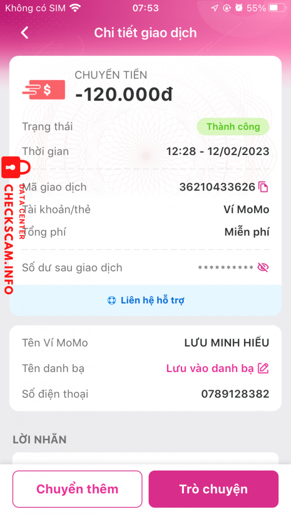 Scammer Alert: Lưu Minh Hiếu Reported: November 16, 2024 Scammer Information Full Name: Lưu Minh Hiếu Phone Number: 0789128387 Payment Gate: MB BANK Payment Account: 0789128382 Category: Marketplace scams Source: Checkscam Evidence Files Report Description Bán acc xong back, anh em lưu ý nhé Comments Your comment Add Comment No comments yet. Be the first to share your experience with this scammer.